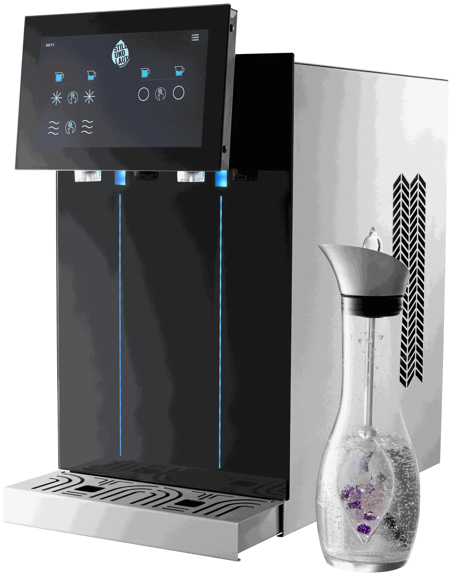 Mit einer Ausgabekapazität für bis zu 150 Personen kombiniert die STILLUNDLAUT QUANTUM 150 kraftvolle Kühltechnologie mit feinperliger Karbonisierung und patentierter Hygienesicherung – als leistungsstarke Auftischlösung für professionelle Ansprüche.
