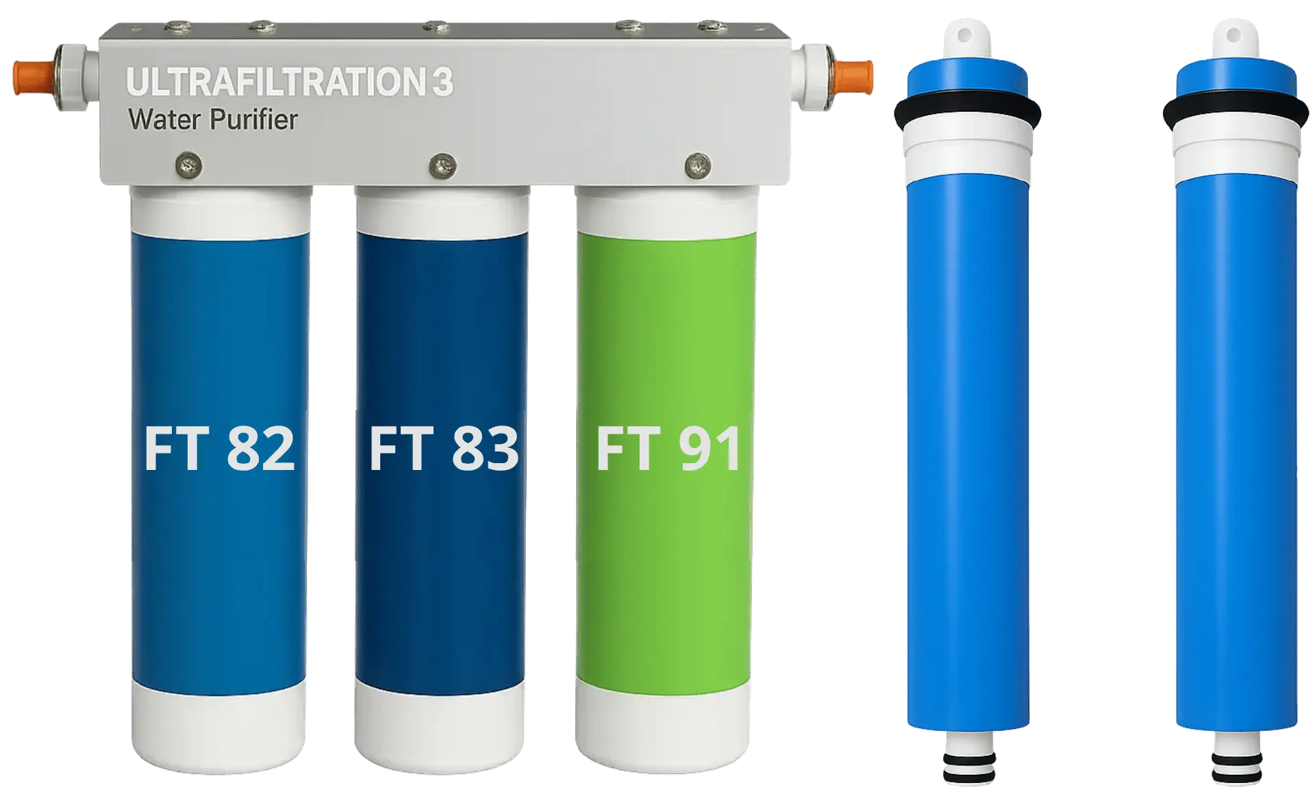 Die POWER SODA OSMOSE kombiniert Umkehrosmose, Sprudelfunktion und leistungsstarke Kühlung in einem einzigen Untertischgerät. FT-Line 3 Vorfilter, zwei RO-Membranen und DUAL-P® sorgen für höchste Reinheit und doppelte Lebensdauer.