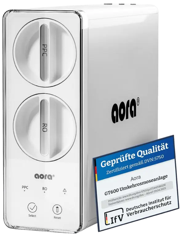 Die AORA GT600 kombiniert moderne 8-Stufen-Umkehrosmose mit einem hygienischen, tanklosen Direkt-Flow-System. Perfekt für alle, die reines Wasser ohne Wartezeit oder Tankwartung genießen möchten.
