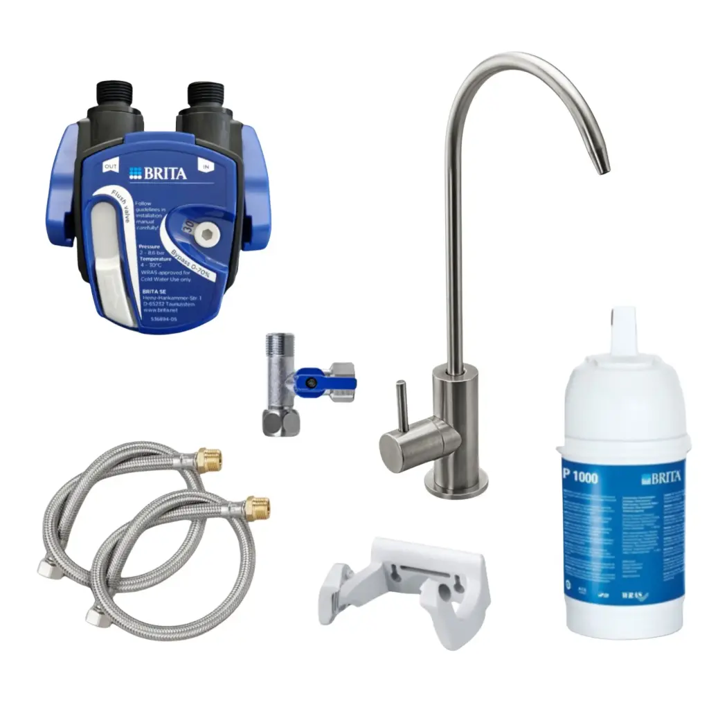 Untertisch-Wasserfilter: BRITA Filter-Kopf, BRITA Filter P1000 inkl. 1-Weg-Wasserhahn